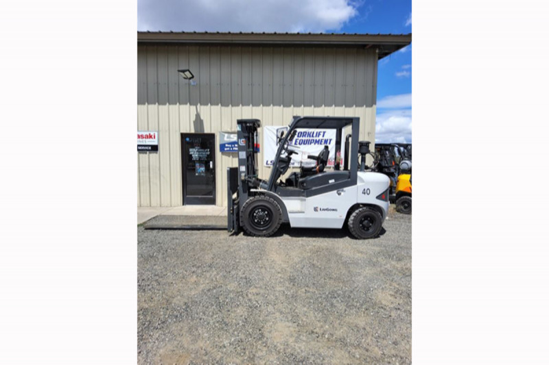 The 2024 LiuGong Material Handling Class V CLG2040H/L LPG is a 8,000 lbs (3,636 kg) capacity, four-wheel, sit-down rider forklift designed for material handling. It is powered by a Kubota LPG/Gas engine and features a power shift transmission.