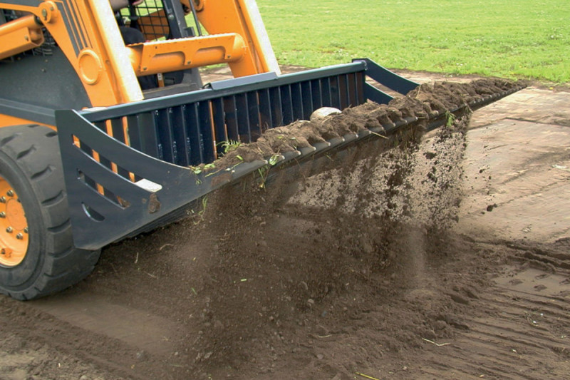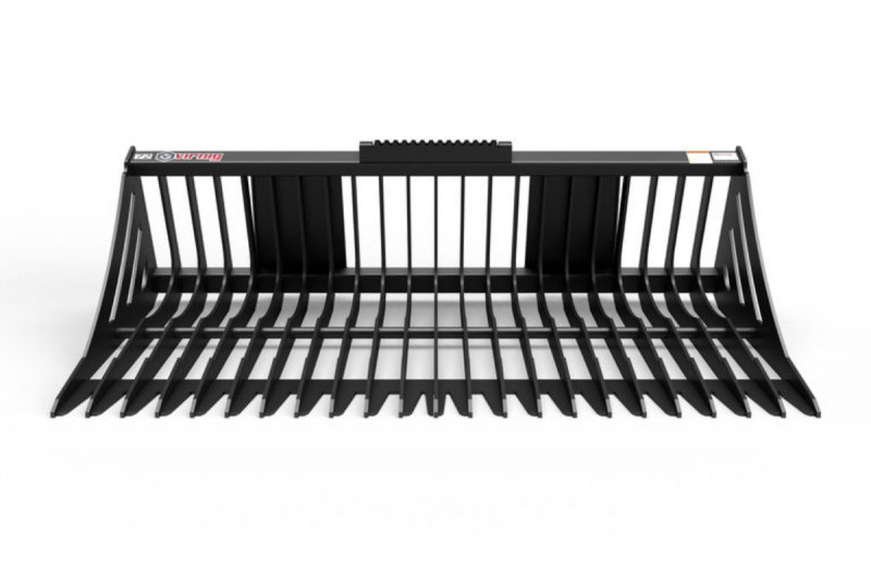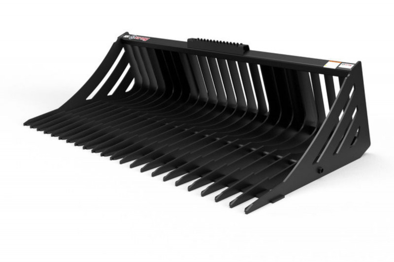 A rugged 72″ skeleton-style rock bucket with heavy-duty Grade 80 one-piece steel tines, 2.9″ tine spacing, and a loader operating capacity exceeding 1,500 lbs. Built for strength and durability, it’s proudly manufactured in the USA.