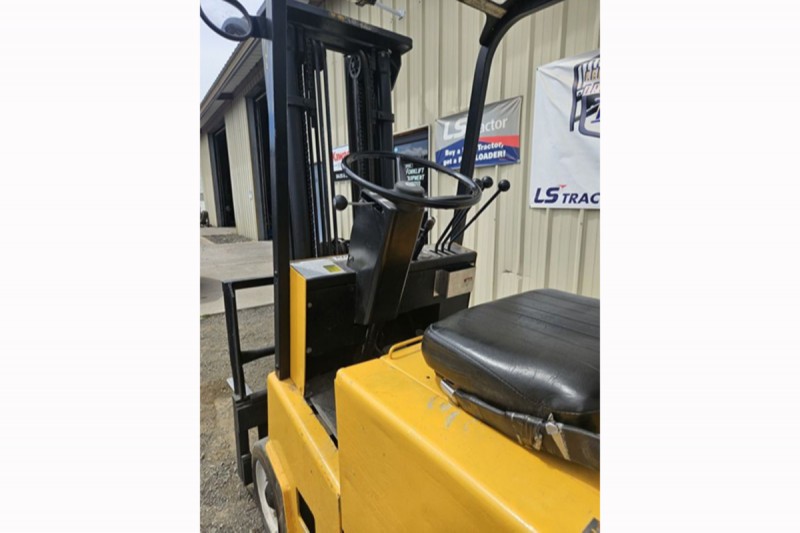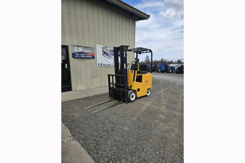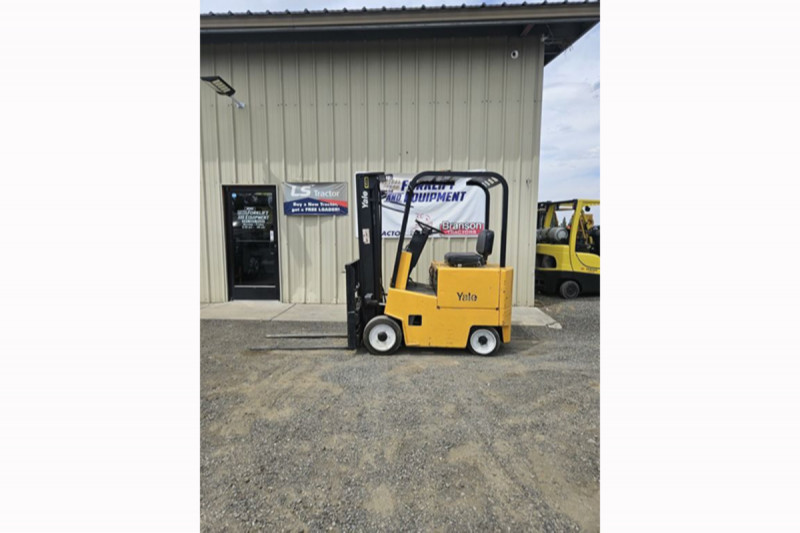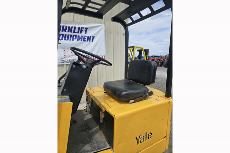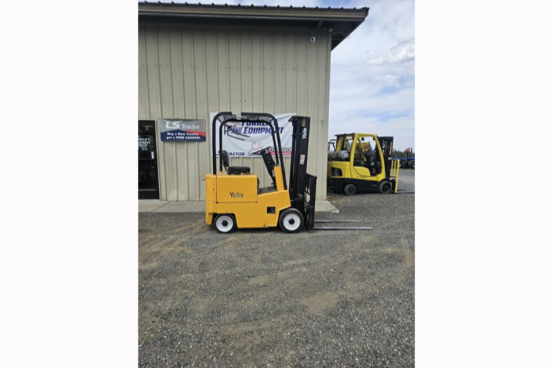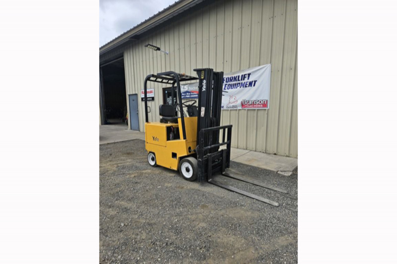 1990 Yale Forklift (Model ERC040ABN) – Electric with only a one-year-old battery, 4,000 lb lifting capacity, triple-stage mast reaching 186″, side shift, 36-volt system with standard 110-volt charger, cushion tires, and approximately 2,800 engine hours.