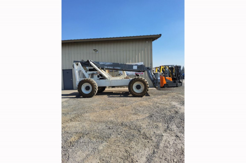 The 2004 Terex SS636C is a tele handler with a 6,000 lb lift capacity and a 36-foot reach. It features a 3-speed Cummins turbo diesel engine, 4x4 capability, and crab steering. The model is known for its robust design and is commonly used in construction and material handling applications.
