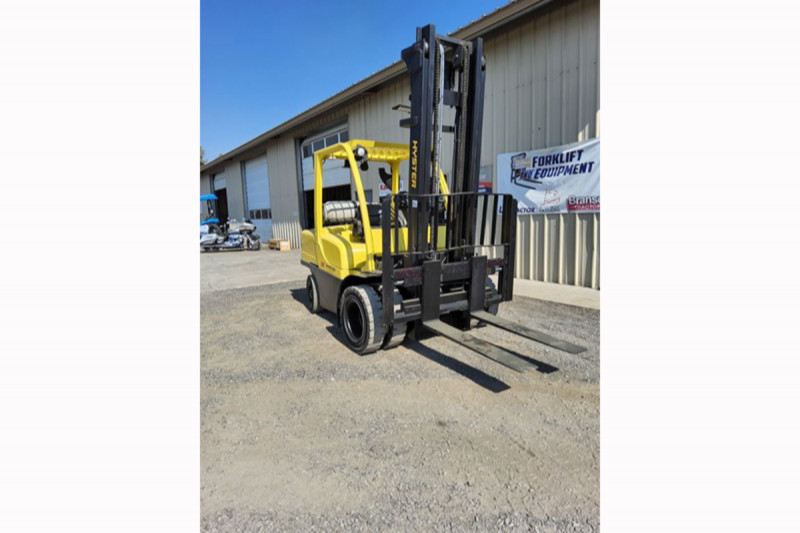 2008 Hyster H90FT – 9,000 lb (approx. 4,082 kg) lifting capacity; standard mast with approximately 183 in lift height; equipped with side shift, dual pneumatic tires, propane fuel, and an automatic transmission. Recently serviced and in good running condition.