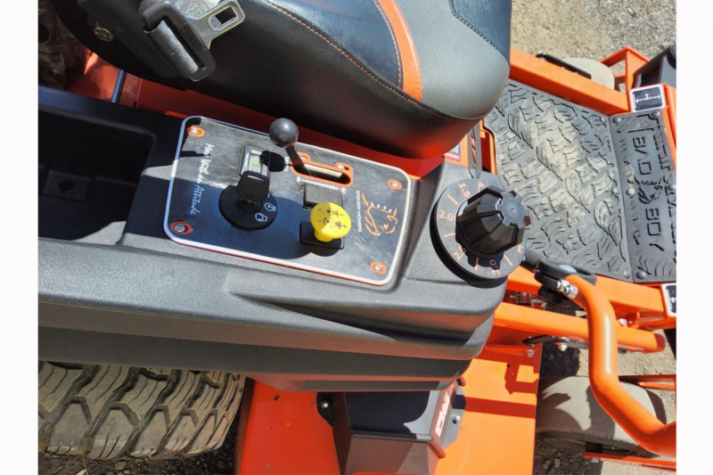 The 2022 Bad Boy Maverick is a zero-turn riding mower known for its robust build, powerful engine, and innovative features aimed at providing a comfortable and efficient mowing experience. It boasts a 7-gauge steel, formed and welded deck with reinforced edges, and features a patented EZ-Ride suspension system for a smoother ride over uneven terrain. It's designed for both residential and commercial use.